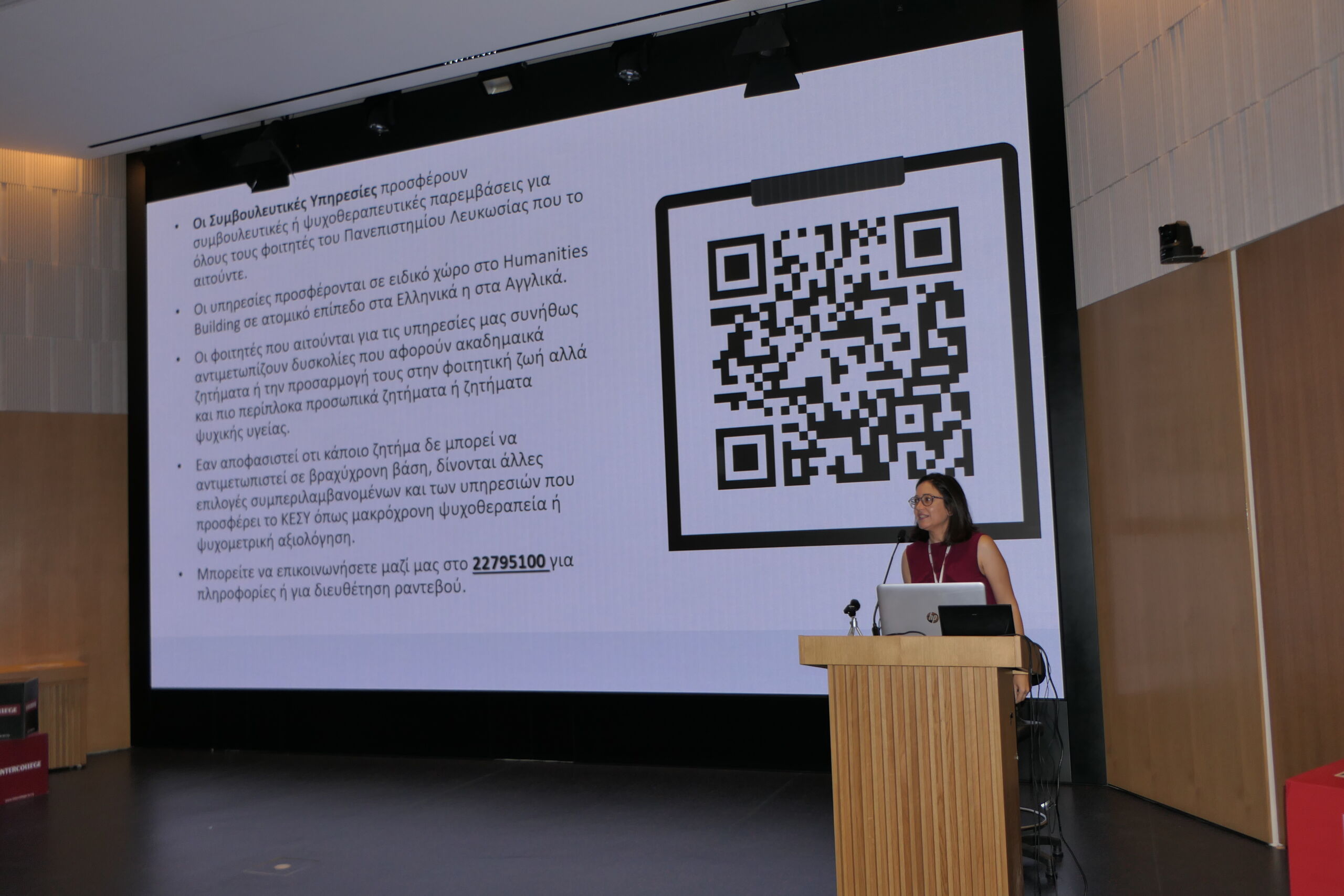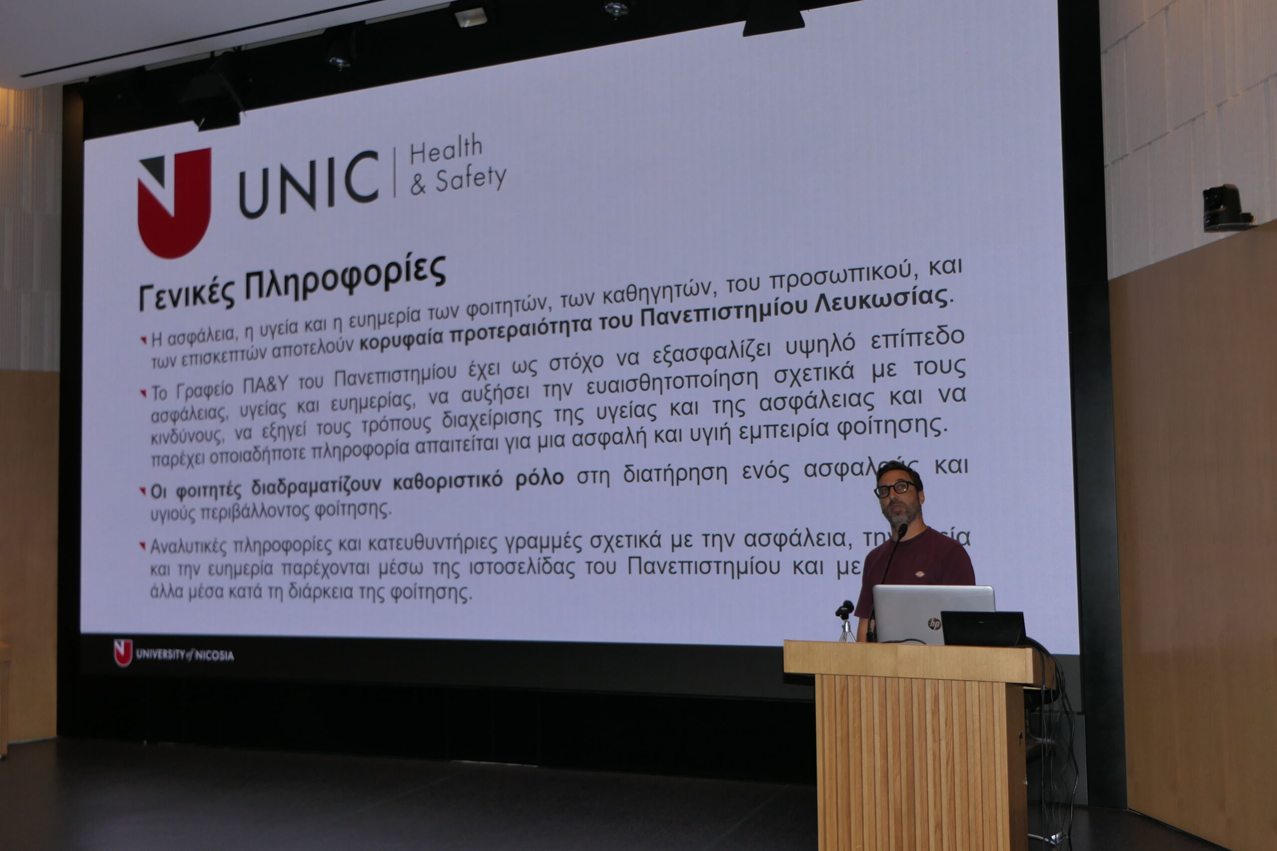 Το πρόγραμμα της ημέρας περιλαμβάνει παρουσιάσεις από βασικά τμήματα και υπηρεσίες του Κολλεγίου, ξεκινώντας με τα Θέματα Ασφάλειας και Υγείας, ακολουθούμενα από την παρουσίαση του ΚΕΣΥ (Υπηρεσίες Ψυχολογικής Υποστήριξης), το Τμήμα Φοιτητικής Μέριμνας, καθώς και το Ευρωπαϊκό Πρόγραμμα Κινητικότητας ERASMUS+. Στη συνέχεια, οι φοιτητές ενημερώθηκαν για τις υπηρεσίες της Βιβλιοθήκης, το Τμήμα Ακαδημαϊκών Υποθέσεων, το Τμήμα Εισδοχής Φοιτητών και το Λογιστήριο για οικονομικά θέματα. Το πρόγραμμα ολοκληρώθηκε με την παρουσίαση του Ιατρικού Κέντρου του Πανεπιστημίου Λευκωσίας, ενώ ακολούθησε διάλειμμα με καφέ και εδέσματα.