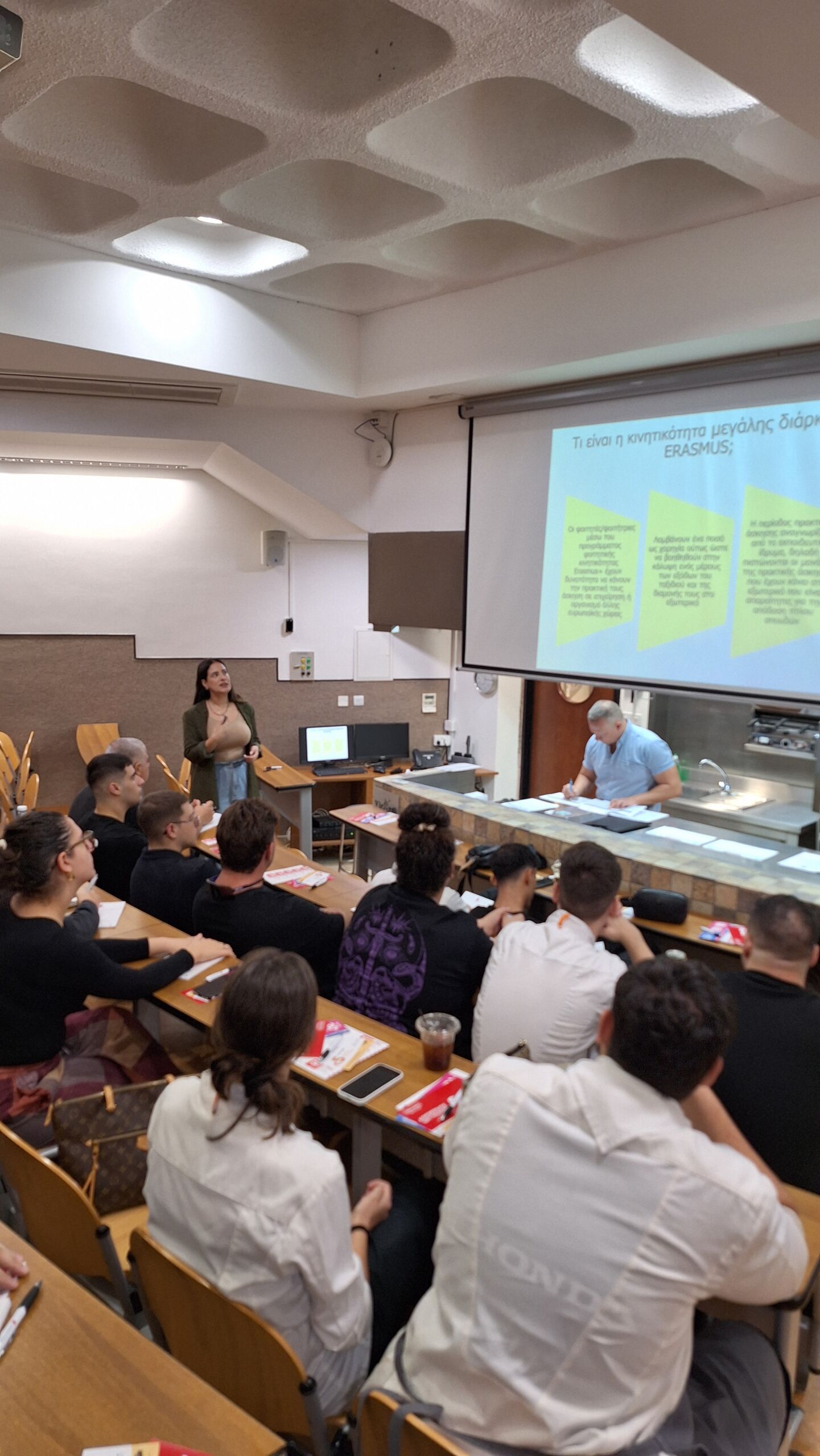 Κατά τη διάρκεια της παρουσίασης, οι φοιτητές είχαν την ευκαιρία να ενημερωθούν για τις δυνατότητες που προσφέρει το πρόγραμμα Erasmus+, όπως η πρακτική άσκηση και η ακαδημαϊκή κινητικότητα σε ευρωπαϊκές χώρες. Η κυρία Παπαμιχαήλ ανέλυσε τις διαδικασίες συμμετοχής, τα κριτήρια επιλεξιμότητας, καθώς και τα οφέλη που μπορούν να αποκομίσουν οι φοιτητές από τη συμμετοχή τους στο πρόγραμμα.